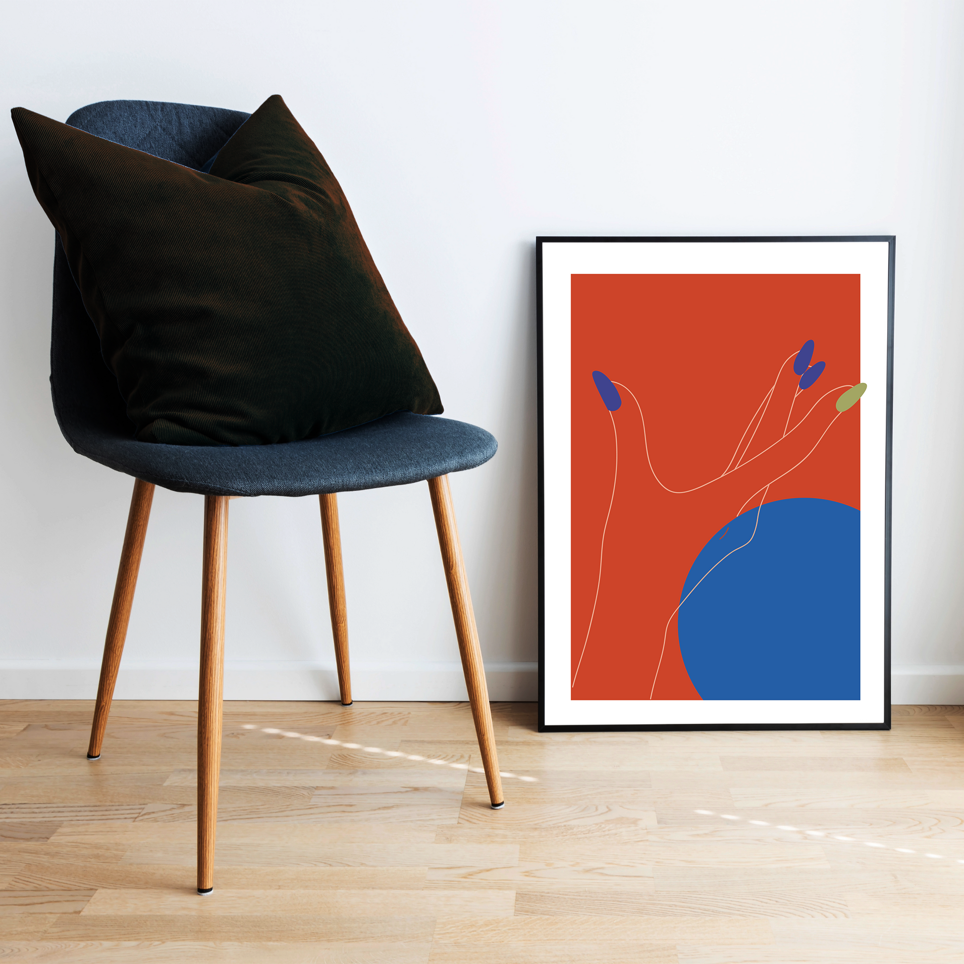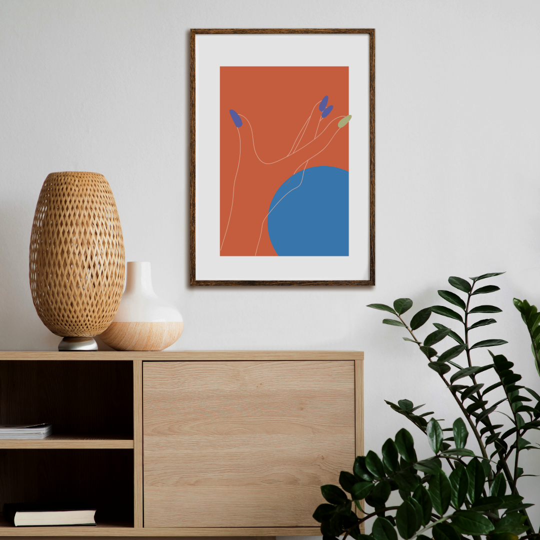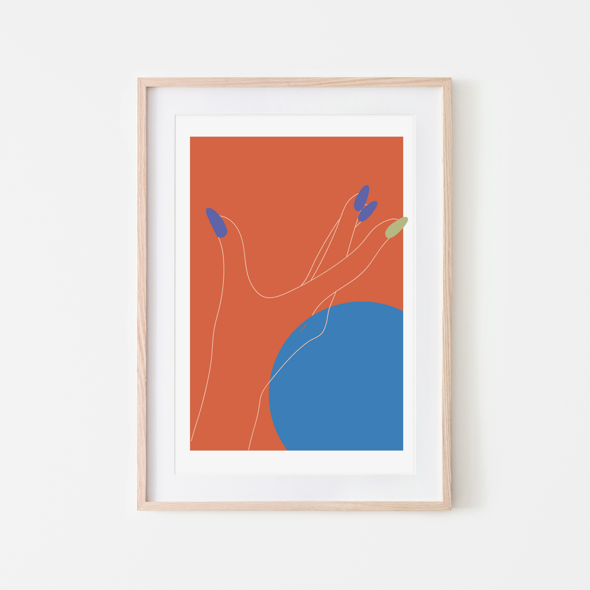 Make a statement with our "Bold Touch" Wall Art Print, featuring an eye-catching design of a female hand with long, elegant nails set against a vibrant orange and blue background. This striking artwork captures the essence of modern femininity and confidence, blending bold colours with intricate detail for a captivating visual effect.