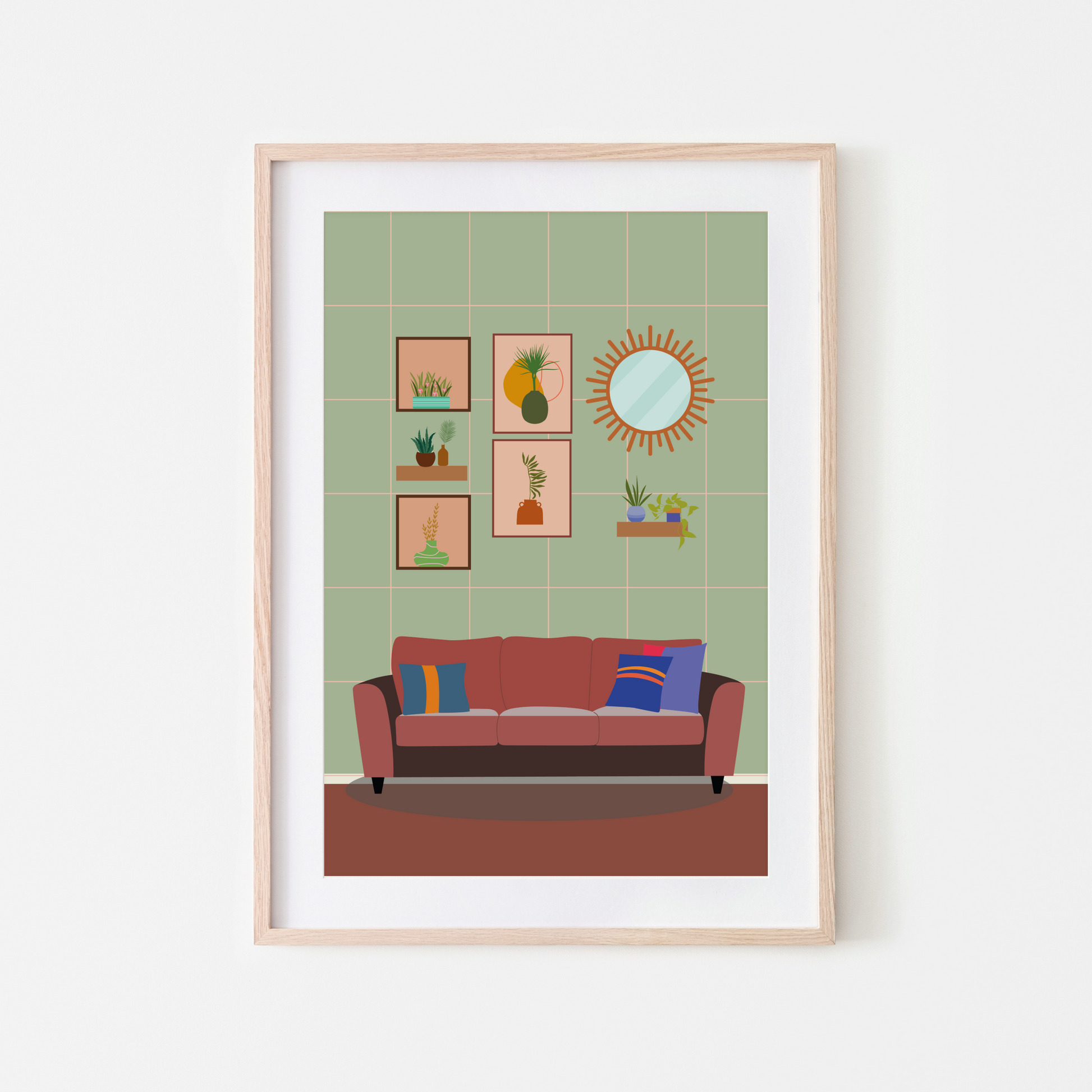 Elevate your home décor with our "Curated Comfort" A3 Wall Art Print, featuring a cosy sofa set against a stunning gallery wall of art prints. This artwork celebrates the beauty of a well-styled interior, highlighting the effortless blend of comfort and creativity. Perfect for those who appreciate modern design and love the idea of curating their own gallery wall.